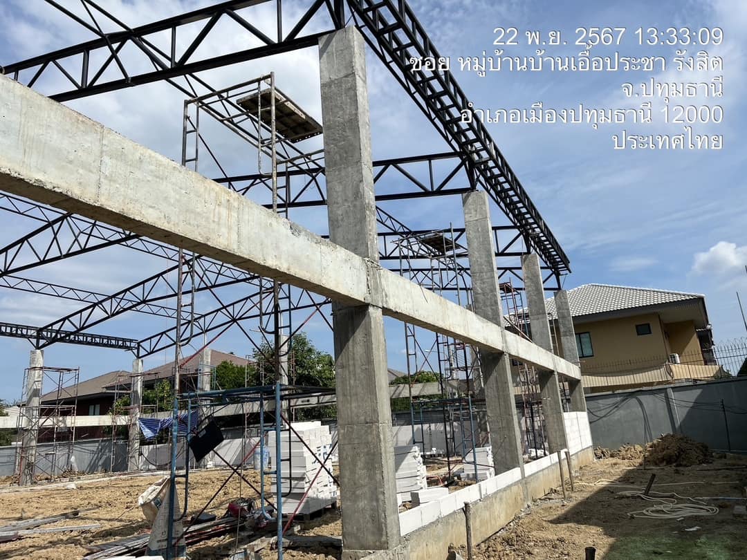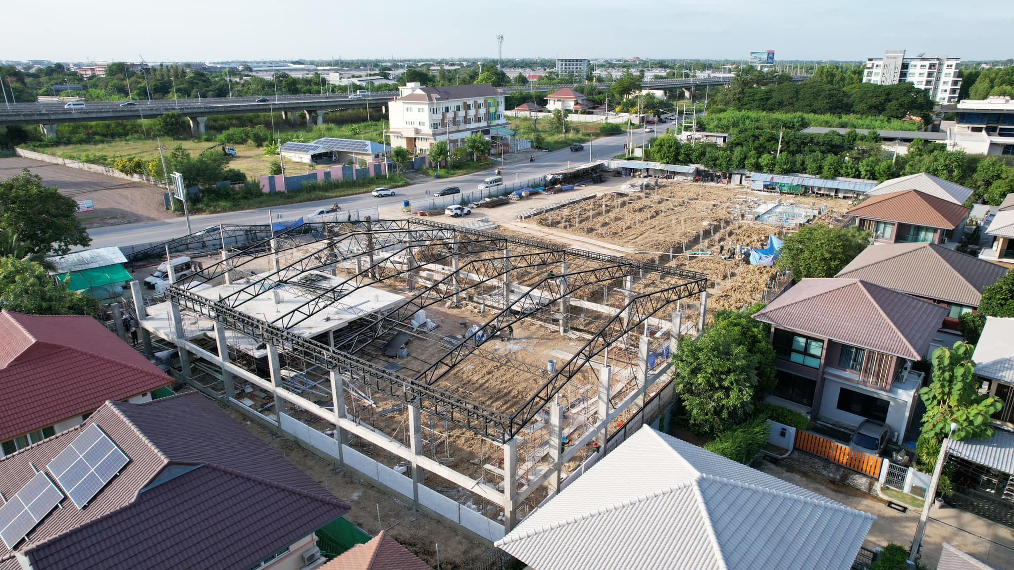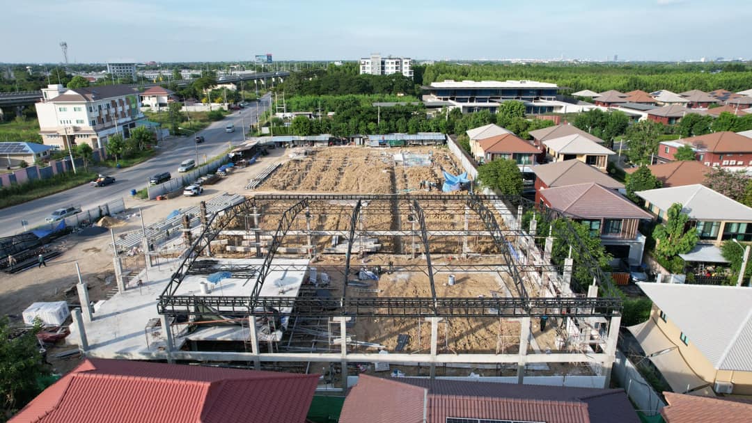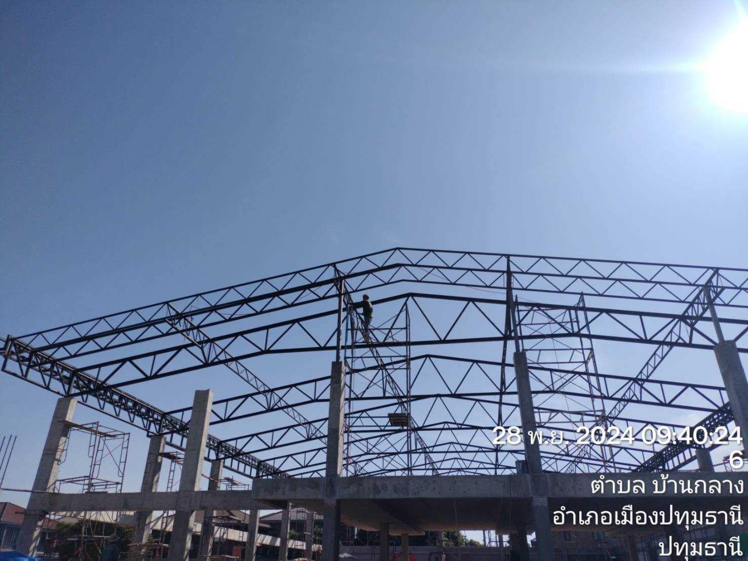 – อยู่ระหว่างติดตั้งโครงสร้างเหล็กหลังคา